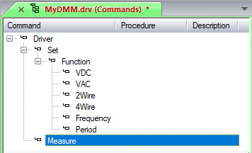 Repeat step 2 and insert six items below Function. Rename them VDC, VAC, 2Wire, 4Wire, Frequency, and Period.