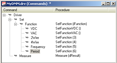 In the following example you will use the SetFunction I/O Table to implement the remaining commands under Set Function: 2Wire, 4Wire, Frequency, and Period.