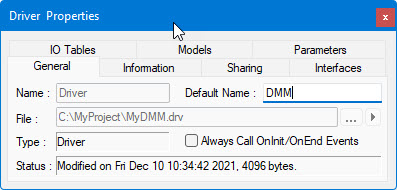 The driver default name usually indicates the type of instrument this driver accesses. For a digital Multimeter, use DMM. This name is used when you add the driver to a system as the default identifier name. It is used to identify the driver in your system programmatically.