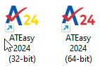 You can now start ATEasy by double-clicking on the 32-bit or 64-bit ATEasy icons on the desktop as shown here, or by selecting ATEasy from the Start, Programs, Marvin Test Solutions, ATEasy 2024 menu.