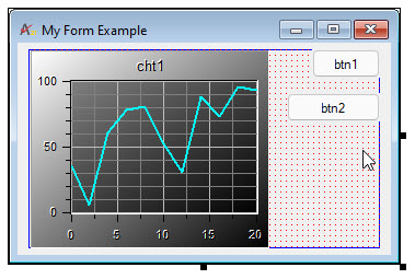In your example, you will be adding a chart control on the left and two buttons on the upper right of your form.