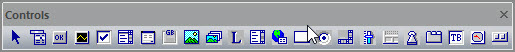 The first button in the toolbar (appears on the left side) is the selection tool. The second button (showing a menu) is used to add a menu to the form. The rest of the buttons are controls. To add any one of these controls, click on it, then click in the form client area, and drag the control to the appropriate size.