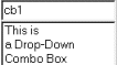 Combines the features of a Text Box and a List Box. Allows the user to select either by typing text into the Combo Box or by selecting an item from its list. |