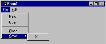Such as the Save item below. When the Save item's type was set to popup, it can contain submenus, such as X shown below: |