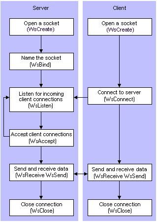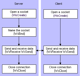 Both client and server must call the WsCreate method to create a socket (handle) for the connection.