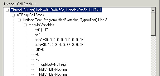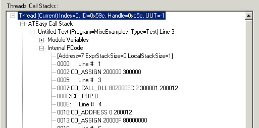 call stack. Each thread displays the ATEasy calls stack (if an ATEasy