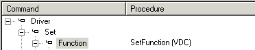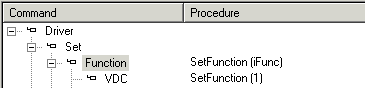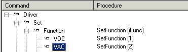 For example, suppose you want to create a command for the following Driver I/O table, which sets a Digital Multimeter voltage measurement to DC if the iFunct parameter is 1, or to AC if it is 2.