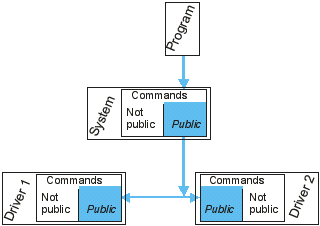 A System can access commands defined within it as well as public commands defined in its drivers. If the command you want to create uses several drivers and is used by several programs or by the system, define it as a System command.