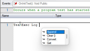 When you type an object name followed by a dot, ATEasy automatically displays a popup list of members that can appear after the dot. Selecting a member automatically enters the member name in the code.