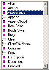 When you type an object name into code, you can automatically display a popup list of members that appears with that code. To automatically display the popup members list, select Options from the Tools menu to display the Options dialog, select the Text Editor tab, and then select the List Members checkbox. The Text Editor features are explained in more detail in Controlling Text Entry Options.