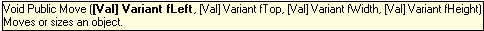 ATEasy then automatically displays the description of that function and the parameters it requires in a tool tip. For example, if you enter the function Log.Move, the following information pops up: