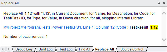 found with the replacement text. After the replacement, ATEasy automatically finds the next text