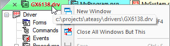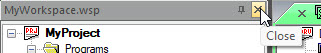 ● Right click and the caption the context menu will show. For Tabbed document window, select Close Window. For Dockable window, select Hide.