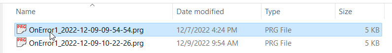 Files are backed up using the original file name followed by the date and time were the backup created. the File modified fields is left as teh original file modified time. Here are examples for a program called OnError1.prg backed up twice after two saves on December 9 2022::