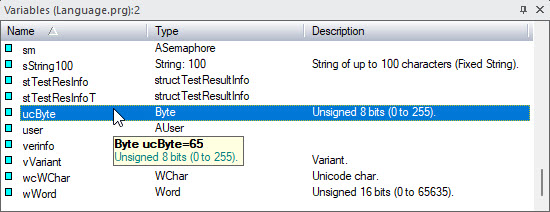 During debugging, when the application is paused, you can also view the values of variables in the code view as well as in the variables view. In the code editor, a tooltip window will be displayed to show the value of a variable over the cursor positioned (see below). During pause, you can select a variable in the variables view, it will also show the value of the variable, as shown below.