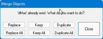 ● Duplicate/Duplicate All copies one or all of the new objects into the destination with new names.