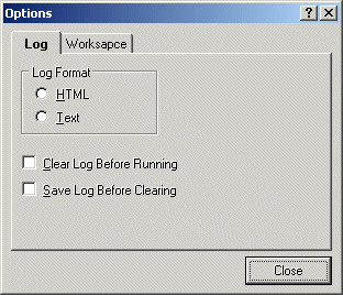 In this example, the Tab control, TabOptions has two visible pages for Log and Workspace information/controls.