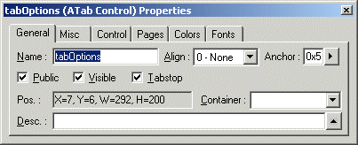 ATab control allows you to define multiple pages for the same area of a form. Each page consists of a set of information or a group of controls that ATEasy displays when the user selects the corresponding tab.
