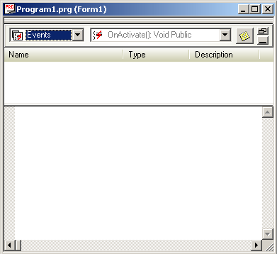 Next to Form's Object/Submodule Combo Box and Procedures/Events Combo Box, we have a description button and Form Window State buttons. These buttons were created to help aid to users programming. You can hide and show certain windows so that you only show the current windows that are needed.