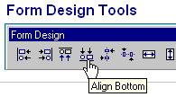 As the cursor is moved over the icons in the Form Design Tools image, a message is displayed identifying the icon. The example shows the mouse over the Align Bottom icon.