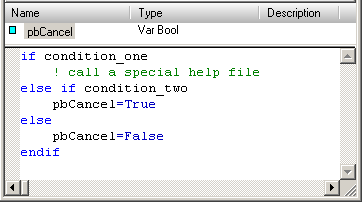 If the variable pbCancel is set to false, the Help is displayed. If pbCancel is set to true, Help is skipped.