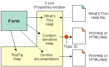 What's This Help can either be held within the Form Properties window or linked through the Form Properties window to an external file.
