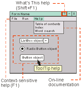 Each type of Help connects to Help information in a slightly different way.