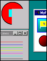 AutoRedraw enables automatic repainting of the graphics in a window. In the following example, two forms (Fills form and Lines form) are partially obscured. When the obscuring object is moved (MyForm) each form behind MyForm behaves differently. The Fills form below does not have AutoRedraw selected. The Lines form does have AutoRedraw selected.