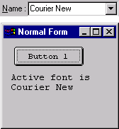 If further changes are made to the form's active font, Button 2 and DrawText will use the new font, but Button 1 will continue to use Courier New.
