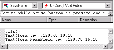 The form and each of its controls have a tag field that can be used to hold text strings. Assume you are working with a form with three form controls, a text box and two buttons. The form tag field is initialized to "No name entered" and the text box tag field is initialized to "Enter your name." These initial values are displayed when the form is opened.