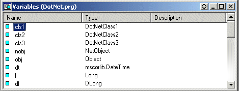 To create an object variable that results in early binding, that is, binding when the program is compiled, declare the object variable with a specific class type. In order to use a specific class type, you must have added to your application a .Net Assembly containing that class. For example, you can declare and create as follows:
