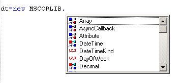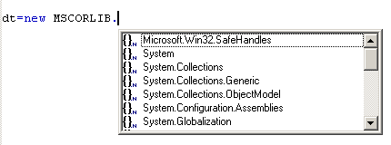 Code Completion of ATEasy will display a list of namespaces after library name followed by ".", see first screen capture. When you choose a namespace, ATEasy will display every class and type that are grouped under the namespace. Then you can select one you want.