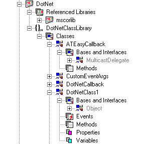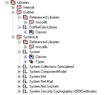 .Net Assembly contains the following sub-modules: Referenced Libraries, Classes, and Types as shown in examples below.