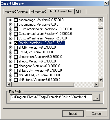 (Object Below). The Insert Library dialog box will appear. Select the .NET Assemblies Page: