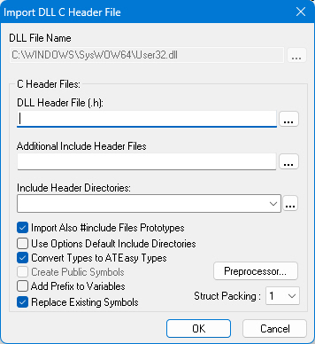 Import DLL C Header File Dialog