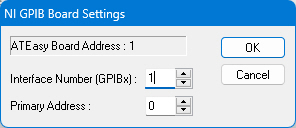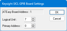 NI (National Instruments), Keysight (Agilent/HP) SICL, and Measurement Computing Boards, GPIB Board Settings Dialog