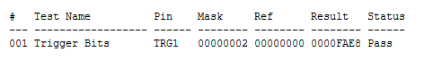 After a RefX test is finished, ATEasy prints the results to a log window in hexadecimal format.