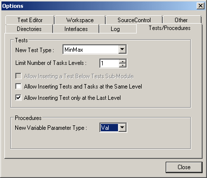 ATEasy normally prohibits you from creating tasks and tests at the same task level in the program. Select this checkbox to change this default so that you can create Tasks and Tests at the same level.
