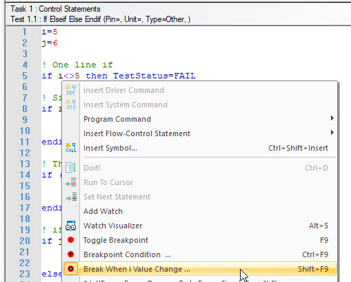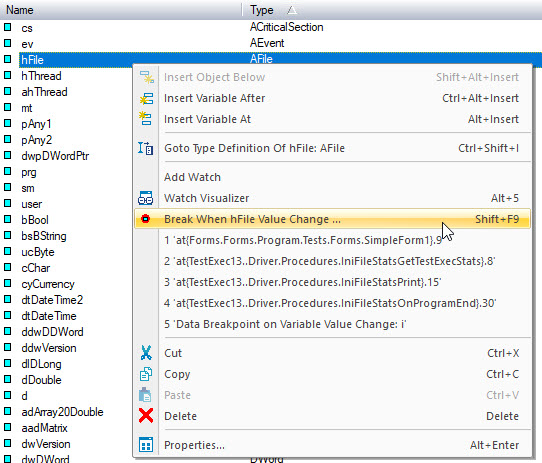 view (similar to Break When Variable Change...), type an expression,