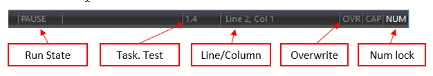ATEasy puts important information about its state in the status bar, which is located in the lower right-hand corner of the Integrated Development Environment (IDE).