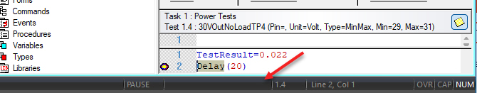 ● Line and Column in Code: indicates the cursor position in the code window; when at a breakpoint, this is usually at the line being executed.