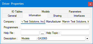 Driver Properties - Information