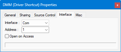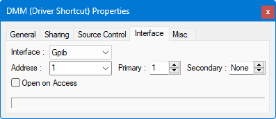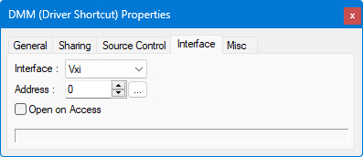 Note Some ATEasy drivers are implemented as None interface and are not using the ATEasy interfaces to control the instrument instead they are using an external library (usually DLL). These include IVI, Function Panel drivers and LabVIEW drivers. In this case the driver is usually configured using parameters that can be entered in the Misc page.