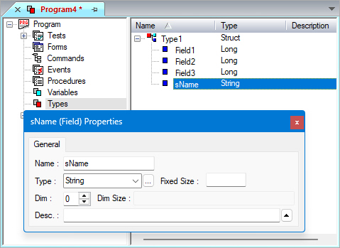 For more information, see Creating User-Defined Data Types, Variables Properties Window and Types View.