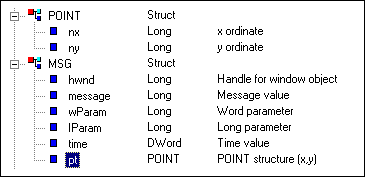 The MSG structure contains the nested pt structure, labeled POINT structure.