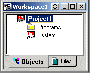 A new project contains an empty folder for Programs and the System icon (without an actual system). Click the plus sign to the left of the project to expand the project and show the Programs and System icons (in the Objects view). For the Files view, it shows only one file which is the project file: