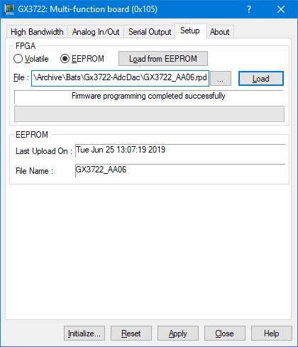 Load from EEPROM button: Loads the volatile (current FPGA) with the FPGA configuration that is stored in the EEPROM.