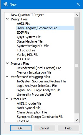 In order to open the schematic view, click on File menu, and then New the following dialog appears.