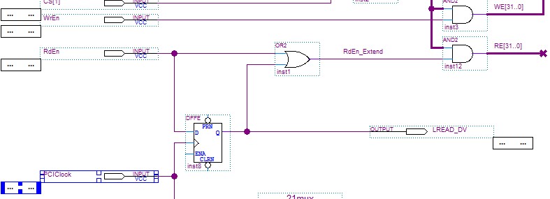 Before moving on we must first extend the RdEn to 2 PCI clock cycles by adding a small circuit as demonstrated below: