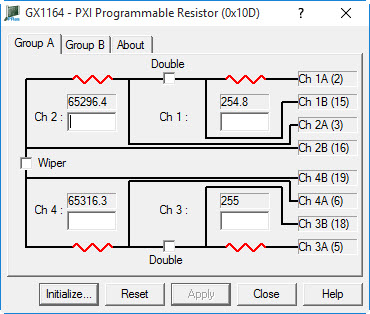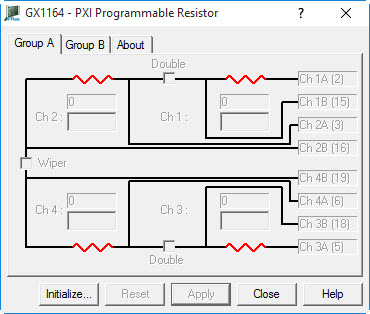 Ch xA/B Text Boxes: Displays the pin name and number in the board connector of the specified resistor channel.
